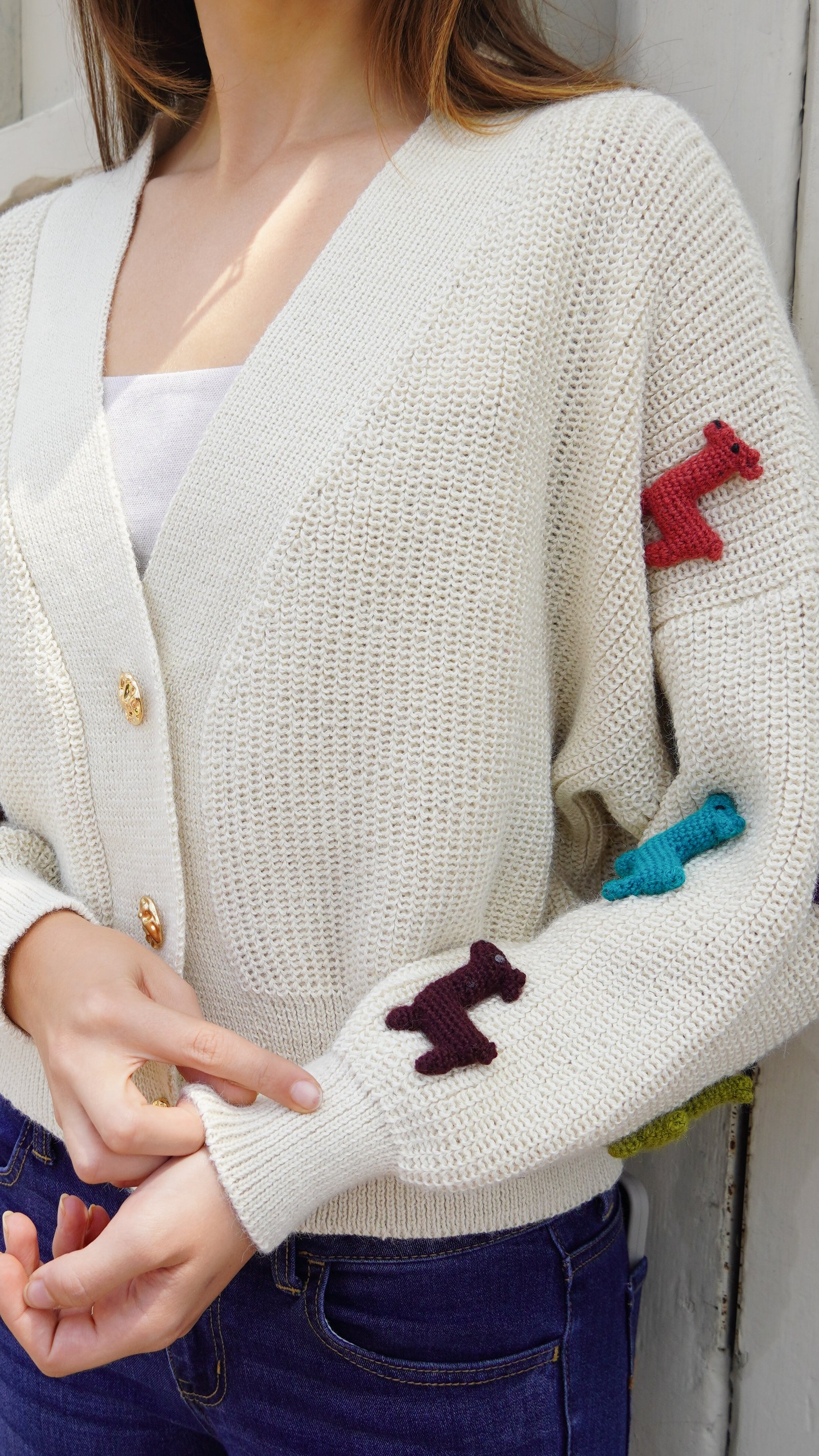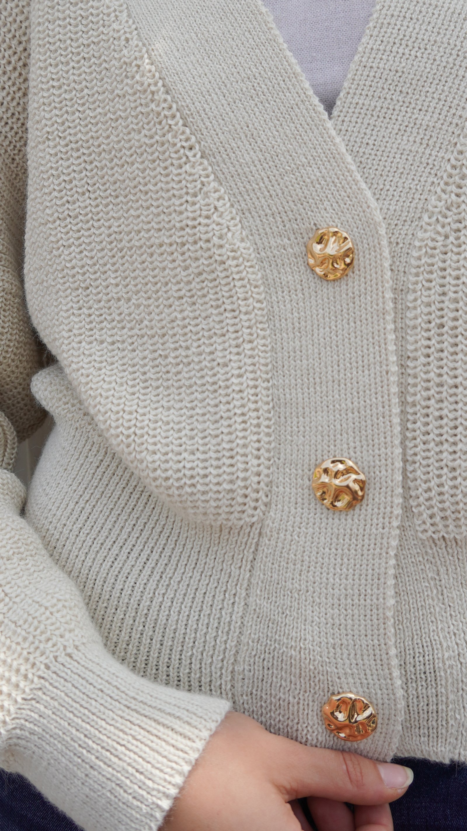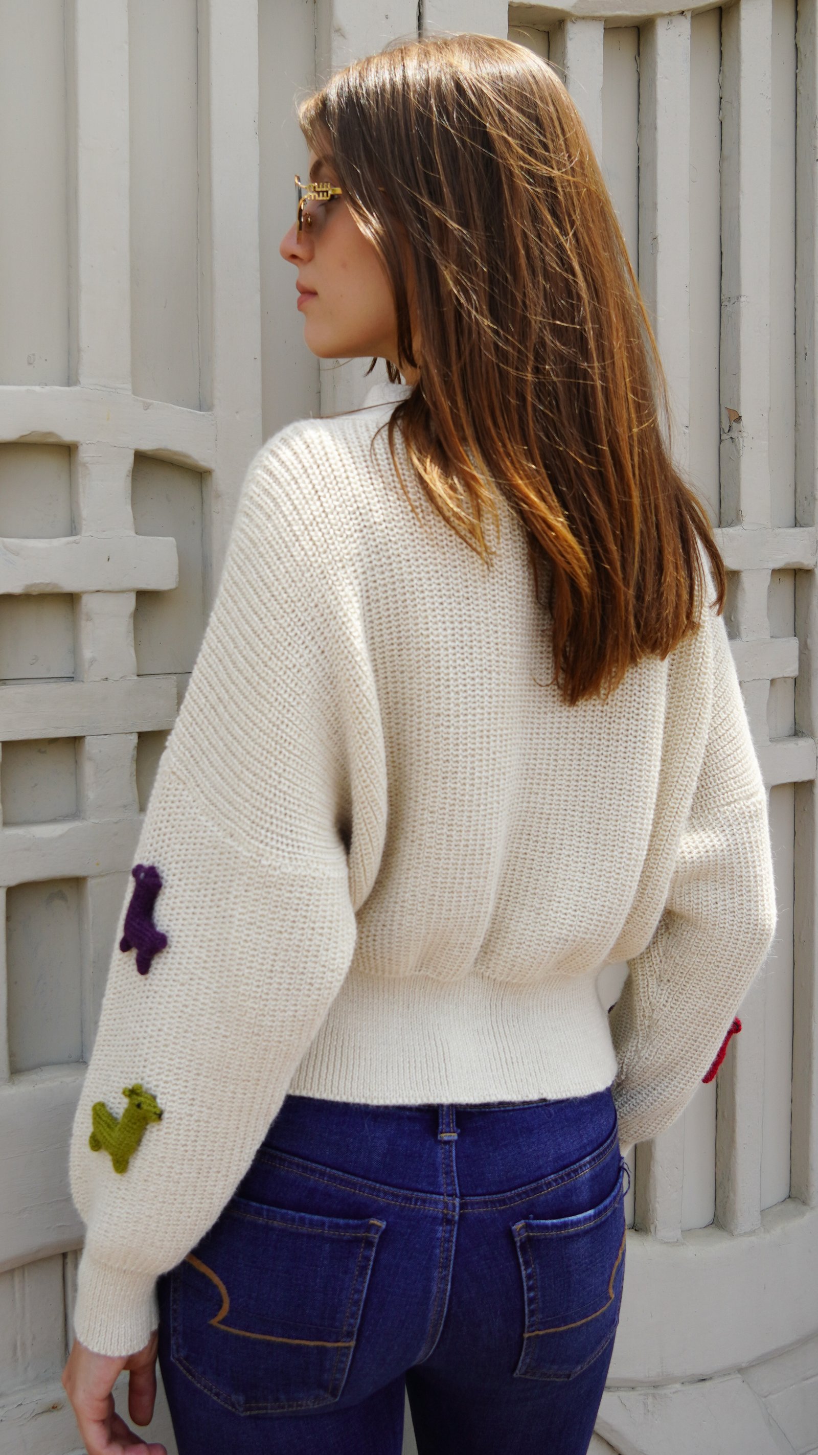 Elaborado en 100% Baby Alpaca, tejido 100% a mano, más de 35 horas de tejeduría. Botones dorados.