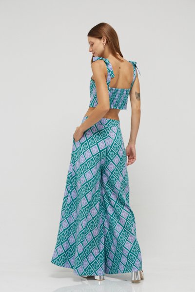 Elaborado en 100% algodón nanzú. Forro interior shorts 100% algodón nanzu. Cierre lateral invisible.